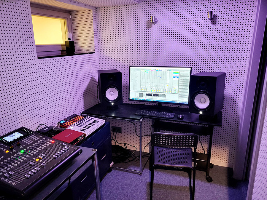 Acoustically optimized rehearsal room with high-quality equipment and excellent sound quality is available for shared use.
