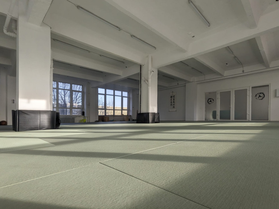 Wir vermieten im Kokoro Dojo einen großen Trainingsraum mit 229 m² Tatami-Mattenfläche.