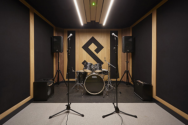 2 x schallisolierten, vollausgestatteten Bandproberäume mit gratis Schlagzeug, Gitarrenverstärkern, Mikros und mehr. 24/7 geöffnet und stundenweise buchbar.